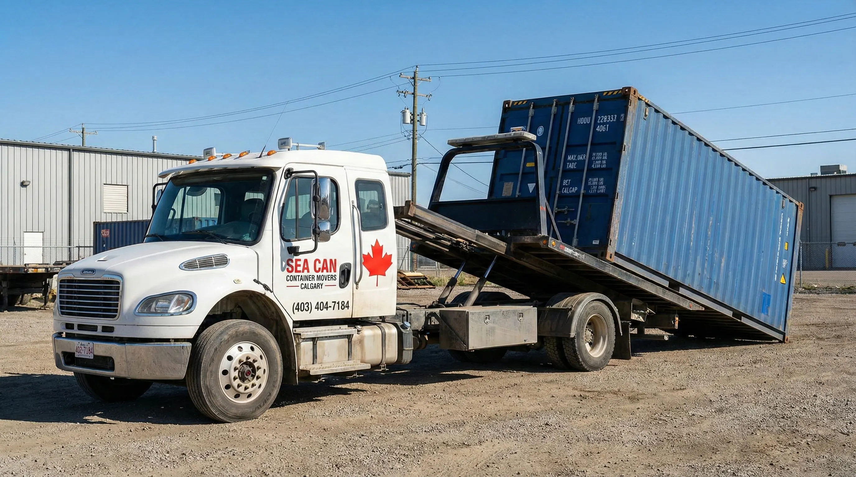 As trusted shipping container movers in Calgary, we provide professional sea can transport and container relocation services throughout Calgary, AB and surrounding Alberta communities. We are the leading sea can movers in Calgary, specializing in 20ft and 40ft shipping container moving, tilt-deck delivery, and flatbed hauling for construction sites, residential acreages, and industrial facilities. Our team is fully equipped to handle complex logistics, ensuring your container is placed precisely where you need it.